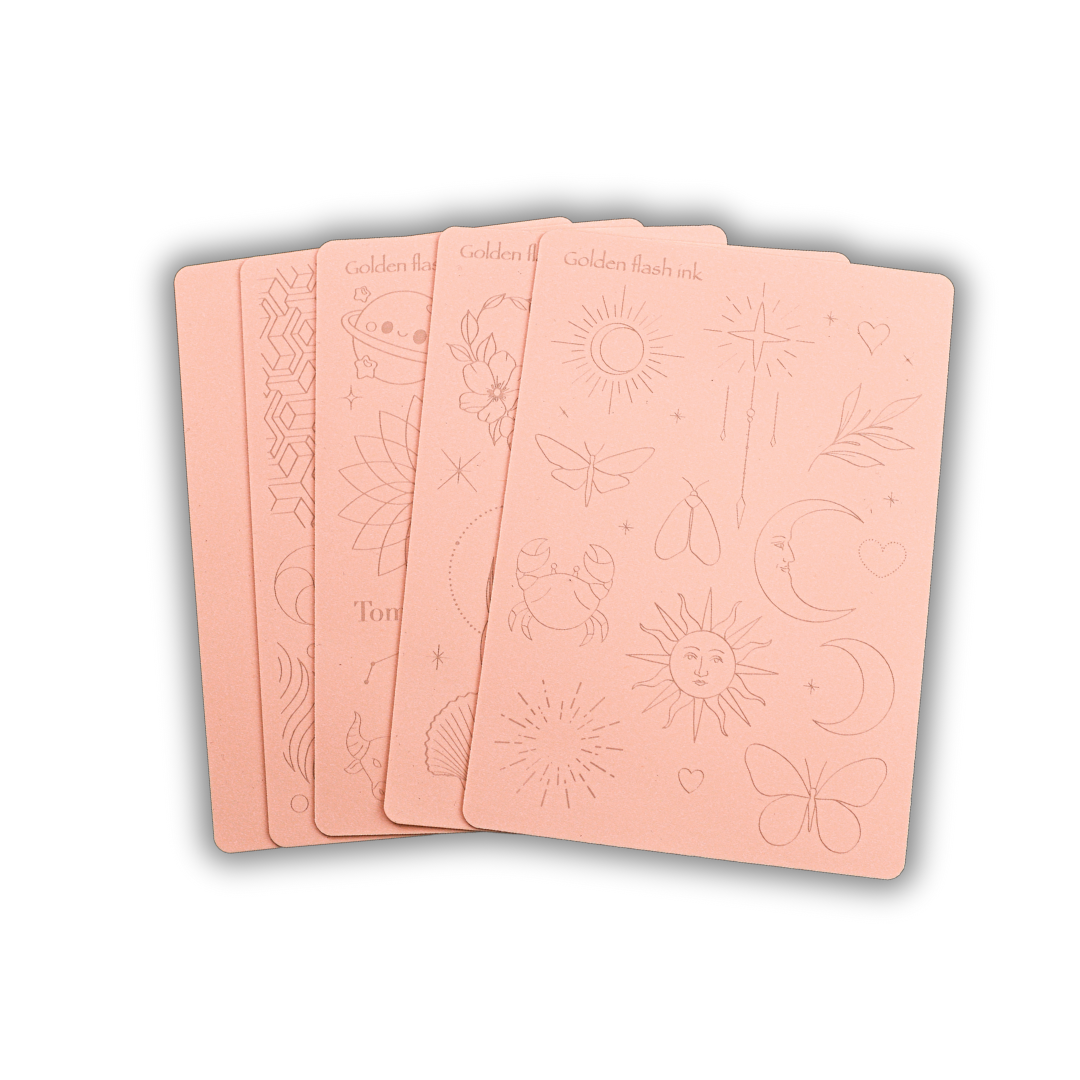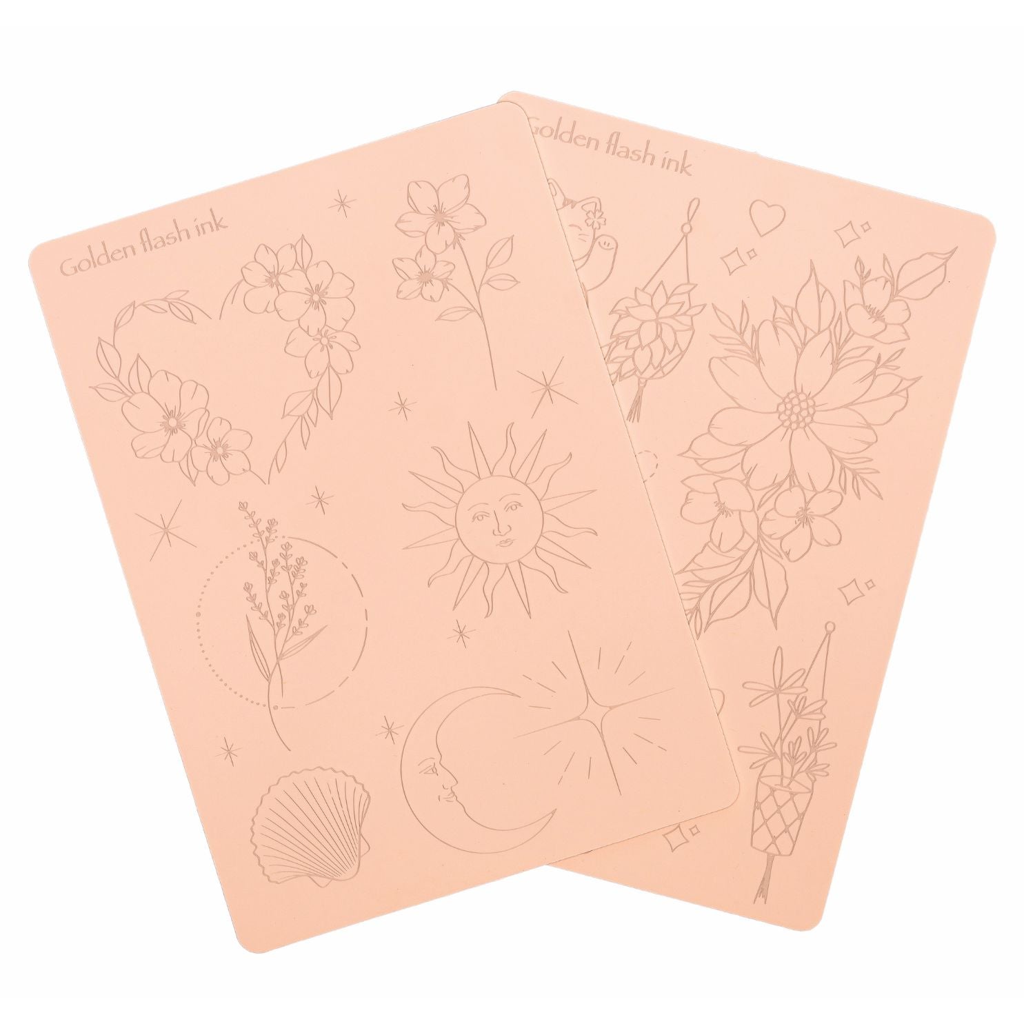 Our double-sided practice skin sheets are designed with precision to replicate realistic stencils. The light gray outlines provide clear guidance for your tattooing artistry against a lifelike backdrop.