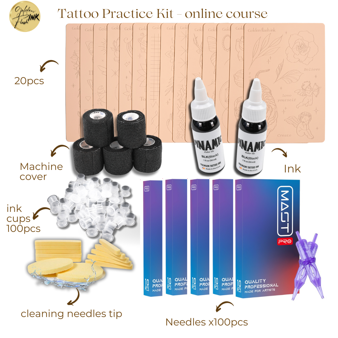 Are you aspiring to become a skilled tattoo artist from the comfort of your home? Look no further than our comprehensive Tattoo Practice Skin Kit, specially designed for online courses. This kit is your gateway to mastering the art of tattooing with convenience, precision, and creativity.